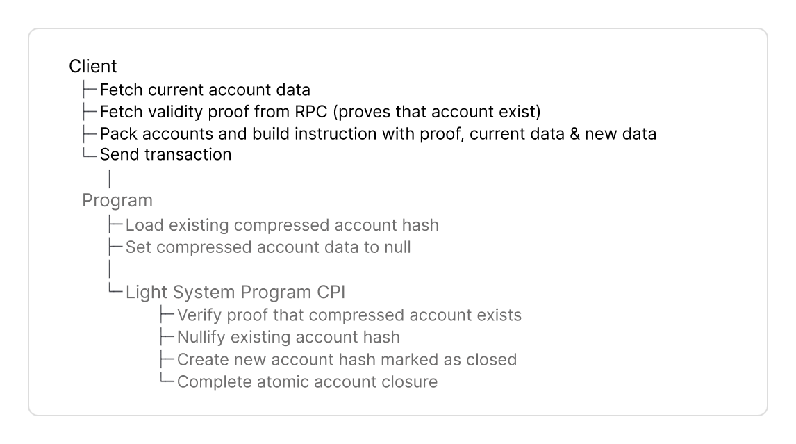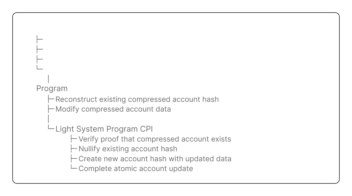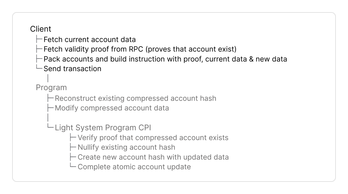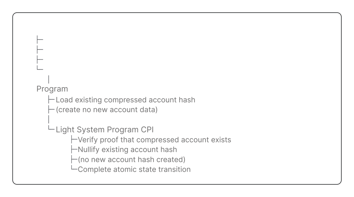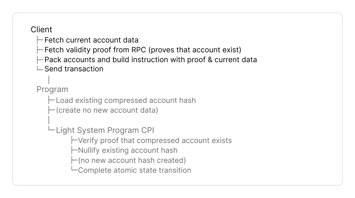 - In other instructions, you prove the compressed account hash exists in a state tree.
